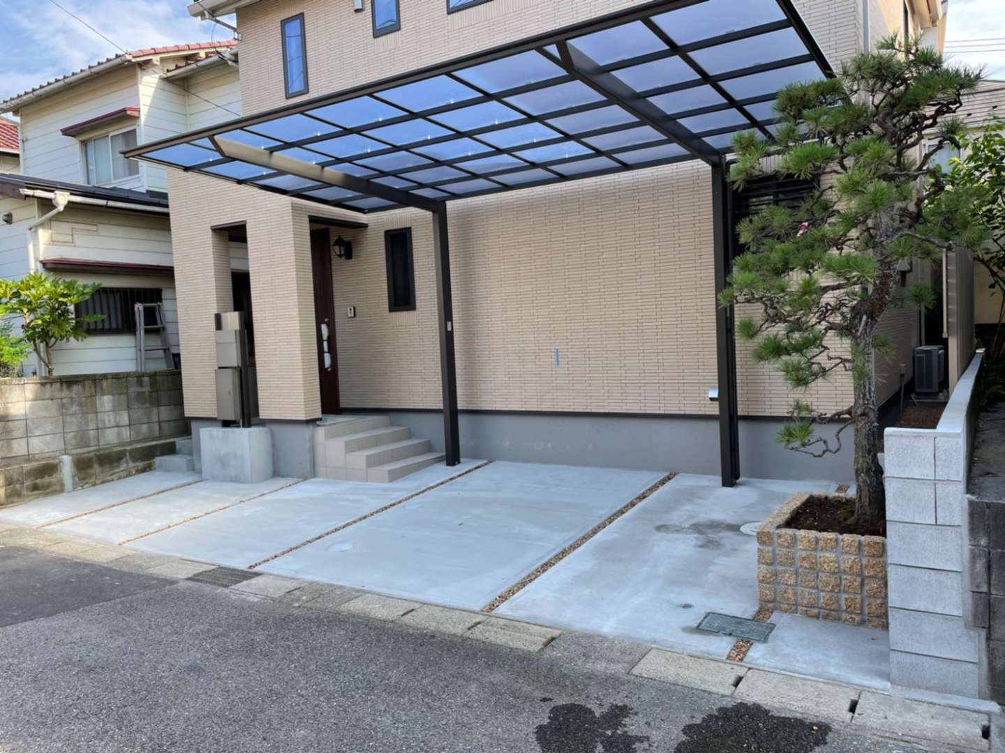 土間打ち、カーポート取付、ポスト設置